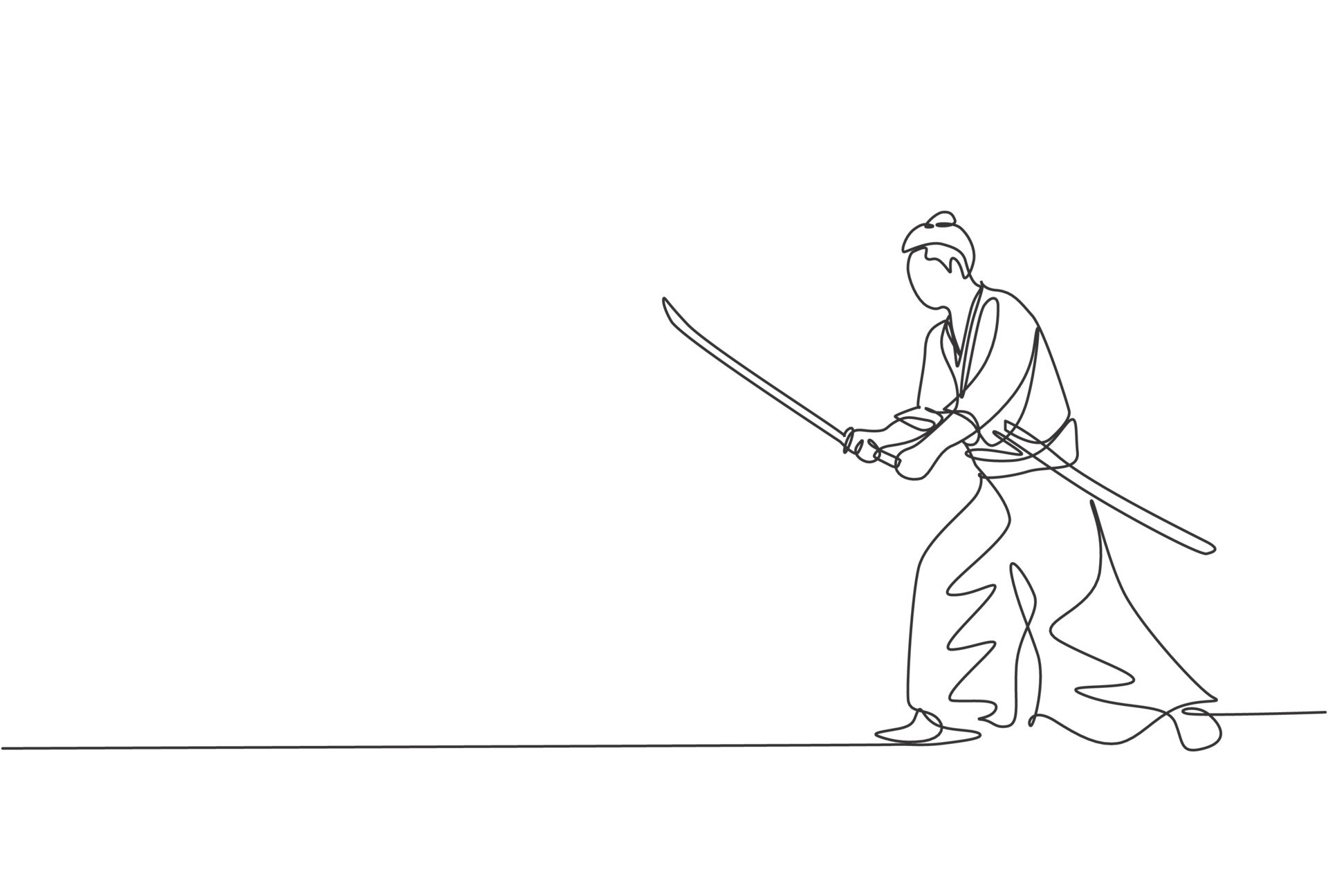 One Continuous Line Drawing Of Young Bravery Samurai Warrior Pose Ready To Attack At Training Session Martial Art Combative Sport Concept Dynamic Single Line Draw Design Vector Graphic Illustration 7768361 Vector Art